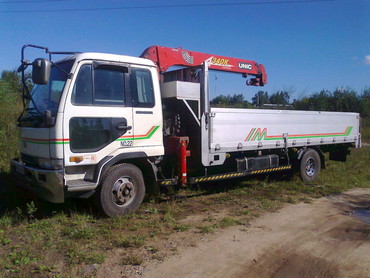 Грузоподъёмность стрелы 3 тонны , машины 5 тонн, длинна кузова 6 м.. Ширина 2.2м. вылет стрелы 10 метров