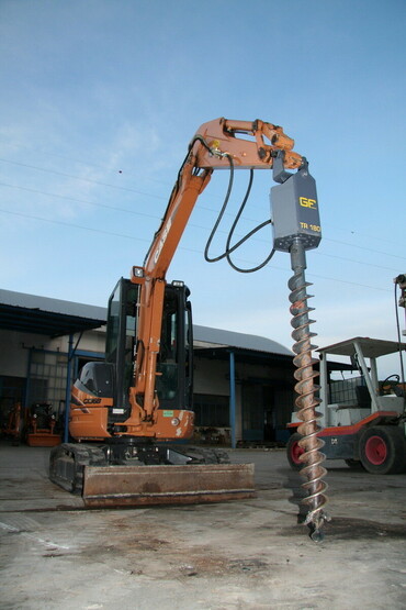 Шнековый гидробур состоит из гидропривода, шнека и крепления. Используется для бурения скважин, ям разного диаметра и глубины, установки опор для подмостков, мостов.