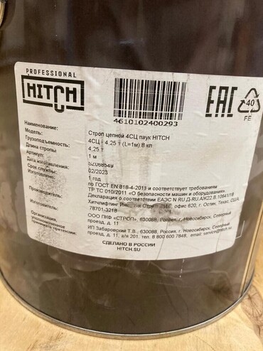 В наличии строп 4СЦ (строп цепной четырехветвевой, паук цепной) грузоподъемностью 4,25 тонн, длина 1 метр.